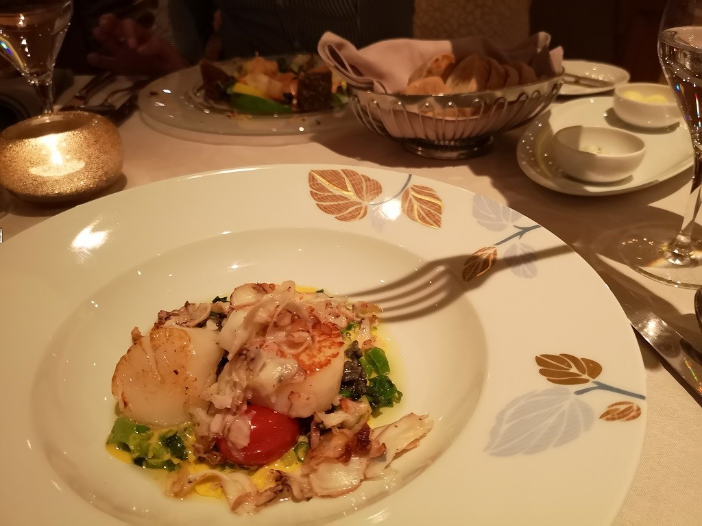 Doch bevor wir am nächsten Tag abreisten, hatten wir am Abend zuvor noch ein wunderbares 3-Gang Menü à la Carte. Das bedeutete, dass wir uns für eine Vorspeise, eine Hauptspeise und eine Nachspeise aus der uns gereichten Speisekarten entscheiden durften. Bevor meine Speisenauswahl serviert wurde, erhielten wir abermals einen Gruß aus der Küche. Diesmal war es ein Pastinakenmousse mit Chorizo. Coole Kombination. Danach servierte man mir meine Vorspeise: ein Garnelen-Avocado-Salat sowie meinen Hauptgang: ein zartes, noch nie vorher so gutes Rinderfilet mit Gemüse und Karottenpüree gegessen. Letzteres, sprich das Karottenpüree, muss ich unbedingt zu Hause nachkochen. Zum Abschluss gab es dann noch eine kleine Käseplatte. Das war ein wahrer Gaumenschmaus und meine Geschmacksnerven wurden sehr verwöhnt.